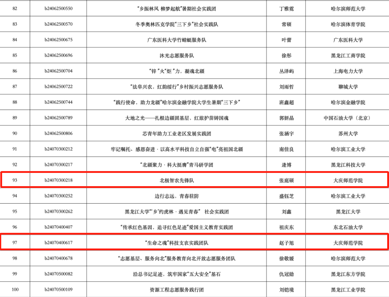 近日,由团黑龙江省委、黑龙江省学联开展的2024年全国“三下乡”社会实践“身在最北方 心向党中央”黑龙江专项活动名单公示,我校经济管理学院北极智农先锋队、生物工程学院“生命之魂”科技支农实践团队成功入选。