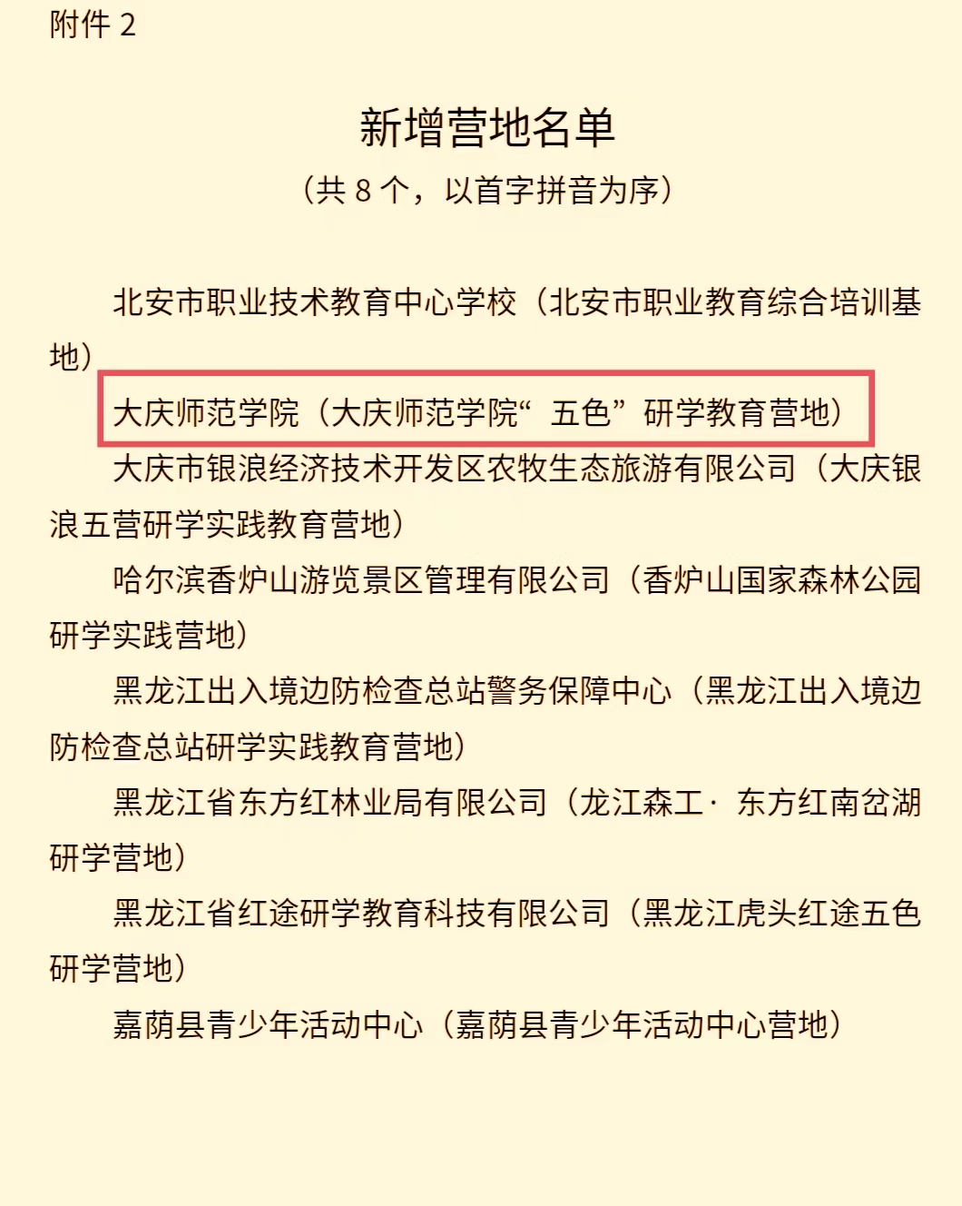 近期,黑龙江省教育厅组织开展了黑龙江省中小学生研学(劳动)实践教育基地、营地补充遴选工作。经自主申报、地市推荐、省级评审,拟新增认定省级中小学生研学(劳动)实践教育基地、营地46个,其中,基地38个,营地8个。我校申报的中文字幕日韩精品有码视频-久久免费区一区二区三波多野-中文字幕人妻A片免费看-精品视频一区二区在线看-好男人在线社区WWW“五色”研学教育营地成功入选。
