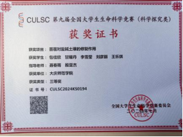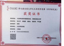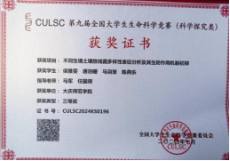 近日,第九届全国大学生生命科学竞赛(科学探究类)决赛获奖名单揭晓。生物工程学院参赛团队荣获国家二等奖1项,国家三等奖4项。在黑龙江省第七届大学生生命科学竞赛决赛中荣获一等奖1项、二等奖4项、三等奖7项,获奖数量取得“历史性突破”,同时获得优秀组织奖。
