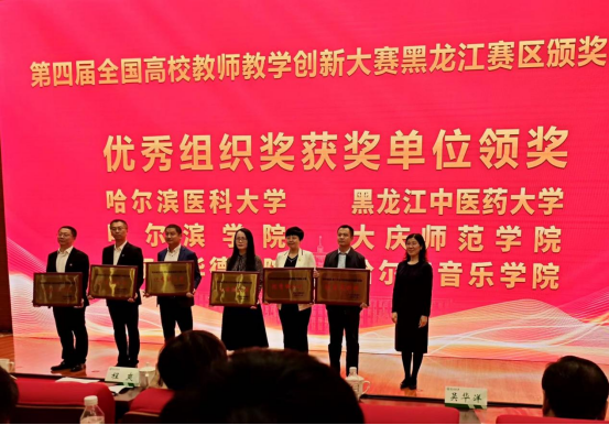 9月28日,黑龙江省教育厅高等教育处在东北林业大学组织召开了“2024年黑龙江省青年教师教学发展示范性研修项目结业式暨全国高校教师教学创新大赛黑龙江赛区总结部署会”,省教育厅党组成员、副厅长程爽参加会议并讲话。在第四届黑龙江省高校教师教学创新大赛中,我校共有9名教师获奖,其中一等奖3项,二等奖2项,三等奖4项,同时我校荣获优秀组织奖。产教融合赛道一等奖获得者徐太海作为教师代表上台领奖,教务处副处长姜秀丽代表教务处上台领优秀组织奖。