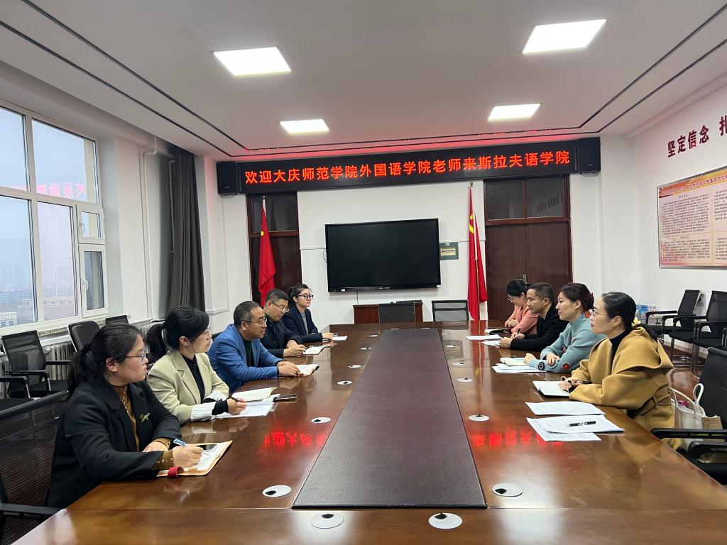 9位教师分赴哈师大西语学院、东语学院、斯拉夫语学院和实验设备管理中心交流,受到哈师大西语学院顾世民院长和张春玲副院长、东语学院王琪院长和王洋副院长、斯拉夫语学院张金忠副院长以及哈师大实验设备管理中心沙永群主任和牟洪臣副主任等领导和老师的热情接待。我院教师就师范专业认证、人才培养方案制订、专业课程设置、实习基地建设、毕业论文选题、语言实训室建设等相关问题,向兄弟学院虚心请教,取经寻宝。双方共同探讨了当前外语教育面临的挑战与机遇,一致认为新时代对培养具有家国情怀和国际视野的外语人才提出了更高要求。
