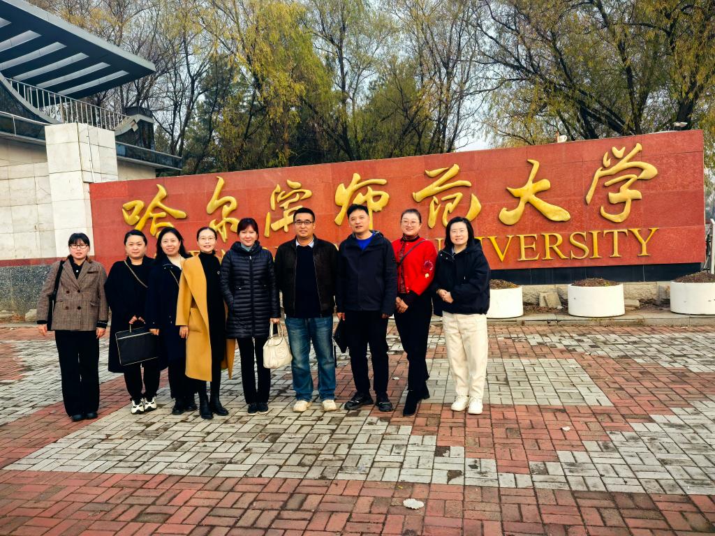 10月30日,外国语学院一行9人在王莉教授的带领下赴哈尔滨师范大学交流学习,随行人员有综合办公室主任、实训中心主任、英语、日语、俄语三个专业的负责人和翻译专业、商务英语专业骨干教师等参加交流。