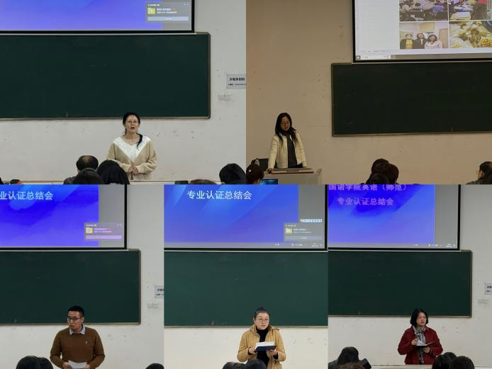 之后,参与认证工作的辅导员、非师范类专业人员及其他专业的系主任也相继分享了感受和体会。大家一致表示,对于学院师生所展现出的强大凝聚力和战斗力,以及外院人身上所体现的团结协作、无私奉献的精神深感钦佩。同时,英语师范认证工作不仅为学院其他专业树立了榜样,也为明年的审核评估以及其他师范专业的认证工作注入了