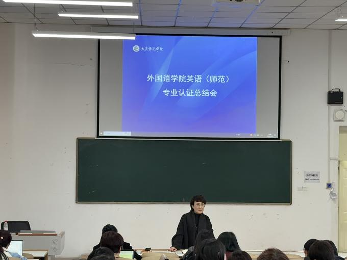 为全面、认真总结英语师范专业认证工作,进一步深化学院“强教风正学风树院风,凝心聚力促发展”主题活动,10月16日、23日和11月6日,外国语学院利用三个下午在院楼阶梯教室举行师范认证工作总结会议,外国语学院全体教师参加了会议,会议由学校副总督学冯展极教授主持。