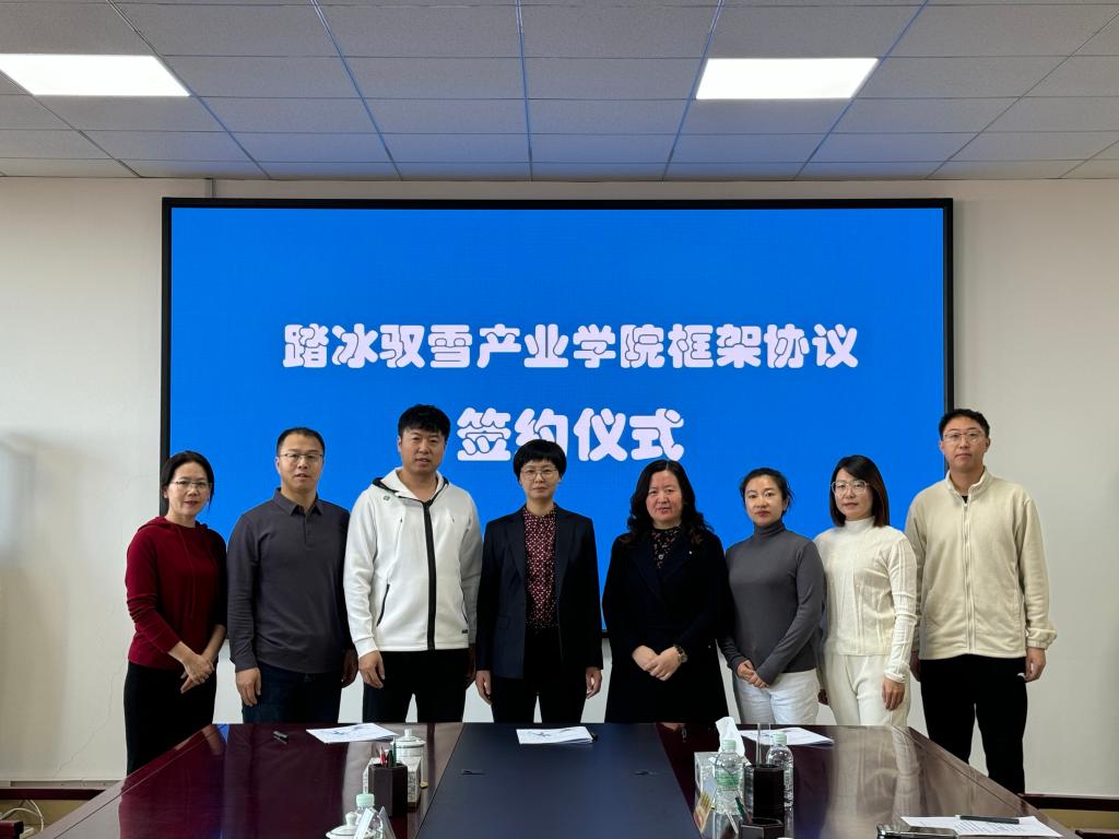 2024年12月10日上午,体育学院与康创体育文化发展(山东)有限公司、大庆市让胡路区油人滑冰运动中心签订共建共享现代产业学院框架协议,体育学院党总支书记楚丽丽、教务处副处长张玲、体育学院相关老师出席。