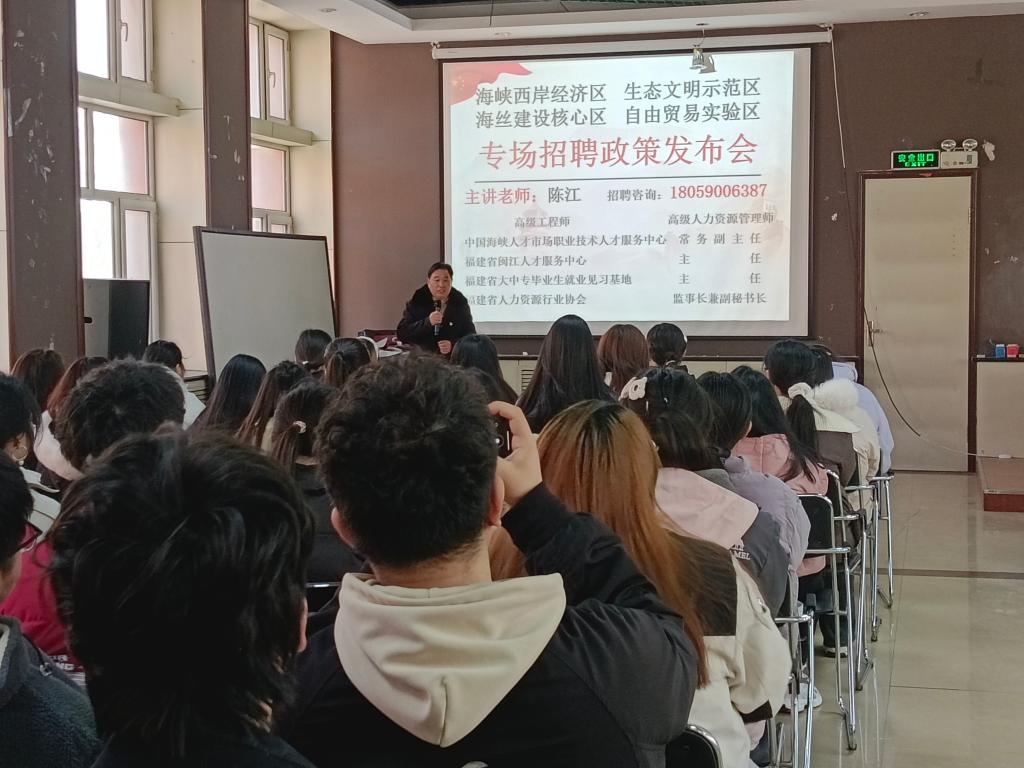 3月12日,学校邀请海南省儋州市川绵中学进校宣讲、招聘,提供14个就业岗位,32名毕业生参加面试,其中8名学生面试成功。3月15日,闽江人才服务中心到我校开展“闽浙粤沿海地区中小学和幼儿园招聘”宣讲和面试,共有153名大三、大四年级学生参会和咨询,33名大三年级学生签订顶岗实习协议,5名大四学生签订就业协议。