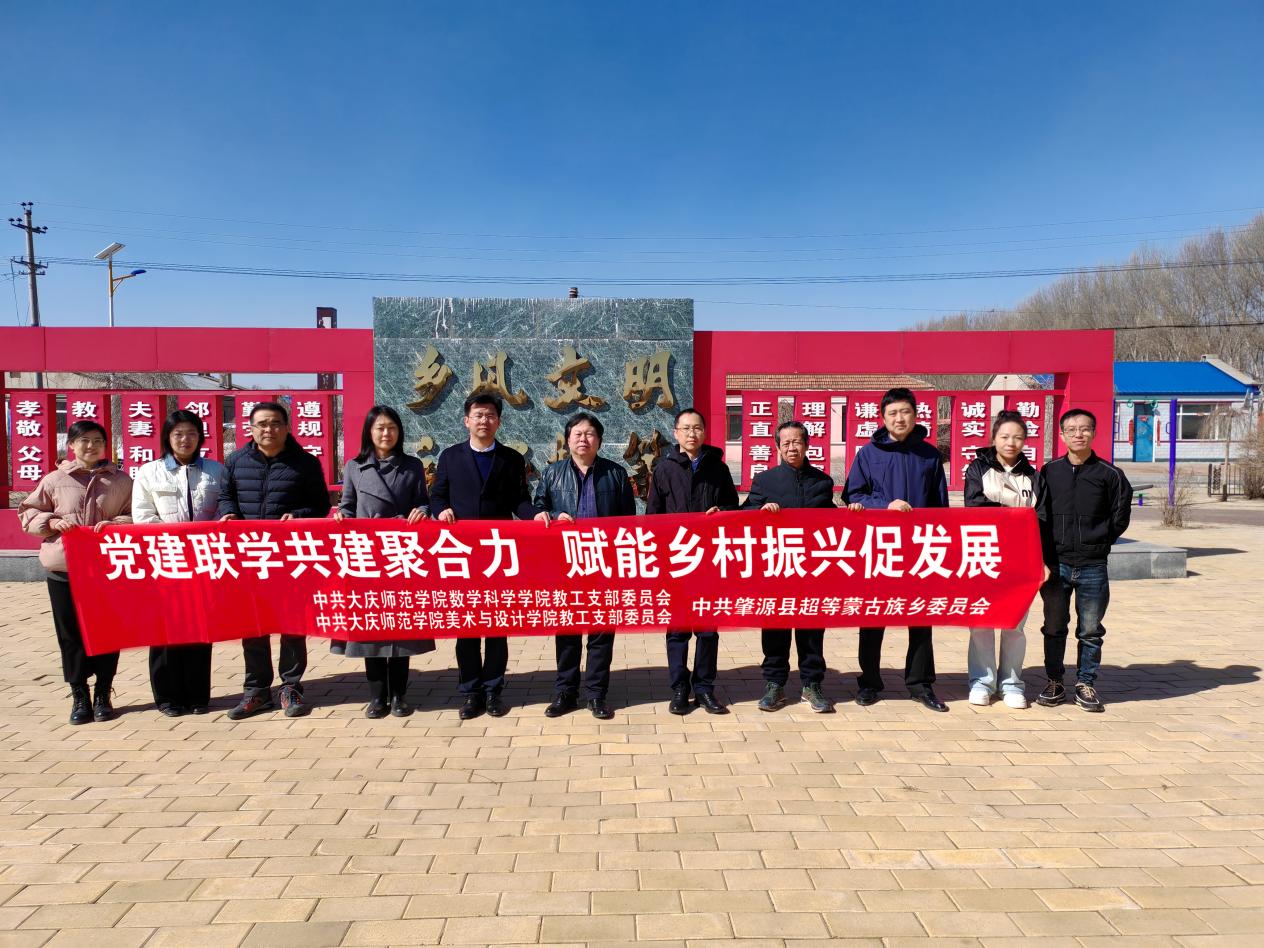 日前,我校美术与设计学院与数学科学学院教工党支部赴肇源县超等乡开展党建共建活动。超等乡党委书记孙大勇、乡长包洪波、我校美术与设计学院党总支书记、院长张立翔、数学科学学院党总支书记燕明辉以及美术与设计学院相关人员参加了活动。