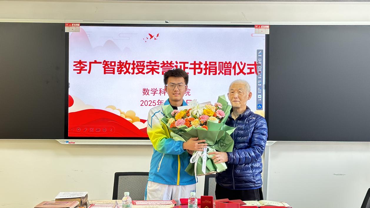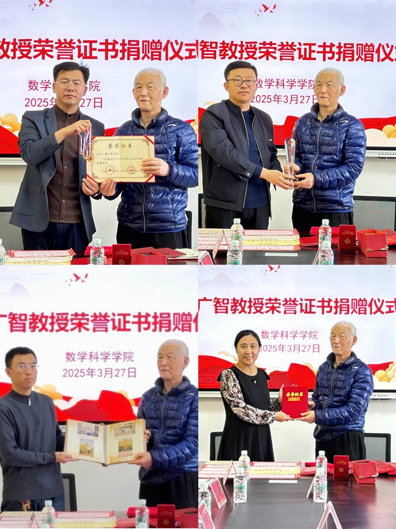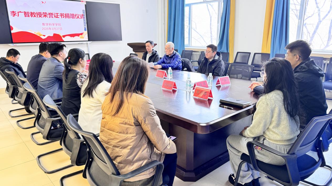 3月27日,数学科学学院在会议室组织了李广智老师荣誉证书捐赠仪式。大庆油田党委老干部处关心下一代办公室主任陈勇皓、副主任武勇、学院领导班子成员、部分师生代表参加仪式。