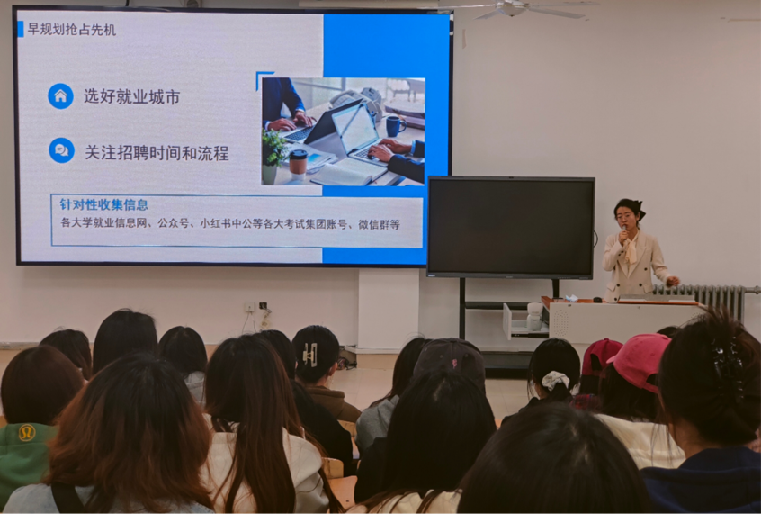 为全方位助力学生实现考编梦想,实现高质量人才培养目标,数学科学学院邀请大庆外国语学校老师李爽于4月9日在主楼1-1教室开展考编经验分享会,院长高扬、2022级学生参会,本次大会由2025届毕业生辅导员张鹭主持。