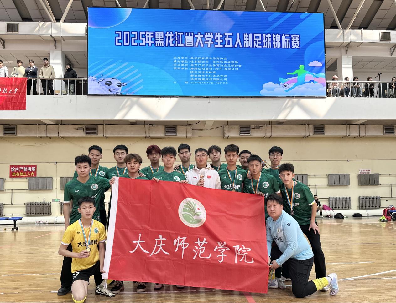 2025年黑龙江省大学生五人制足球锦标赛于2025年4月13日至4月16日在佳木斯大学举行,本次比赛吸引了黑龙江省内18所高校的340余名运动员参赛,我校足球队派出教练员孙福财老师和运动员15名参加男子乙组的比赛。本次比赛全体队员奋勇拼搏夺得全省第三名,创下校队历史最佳战绩,书写了校园足球发展的新篇章。