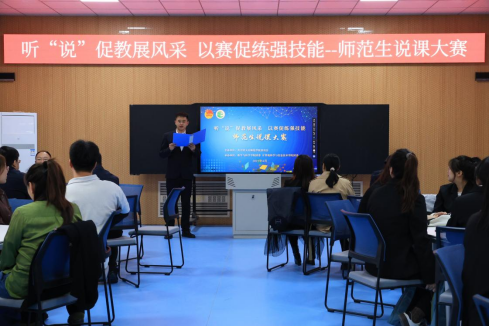 为进一步夯实师范生专业技能,提高师范生就业竞争力,助力学生成长成才。4月23日,由学校团委主办,数学科学学院团委、计算机科学与信息技术学院团委共同承办的2025年读书月系列活动之“听‘说’促教展风采,以赛促练强技能”师范生说课大赛决赛在教师技能训练中心成功举办。教务处处长张国发、数学科学学院院长高扬、计算机科学与信息技术学院院长王健,二级学院党总支副书记、团委负责人及参赛选手共计50余人参加。