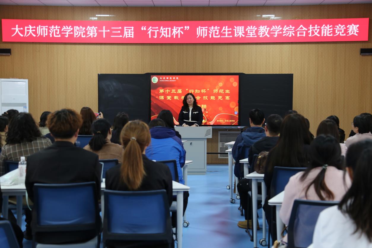 开幕式由机电工程学院副院长王玉玲主持,教务处副处长张玲、各二级学院副院长、中学骨干教师和参赛选手们参加。开幕式上,王玉玲指出,比赛是师范生展示教学风采的重要舞台,强调教育为国之本,师者为育人之魂。张玲则从传承行知精神、以赛促学、夯实教学根基、坚守教育初心四个维度,解读比赛规则,并对参赛师范生提出期望。