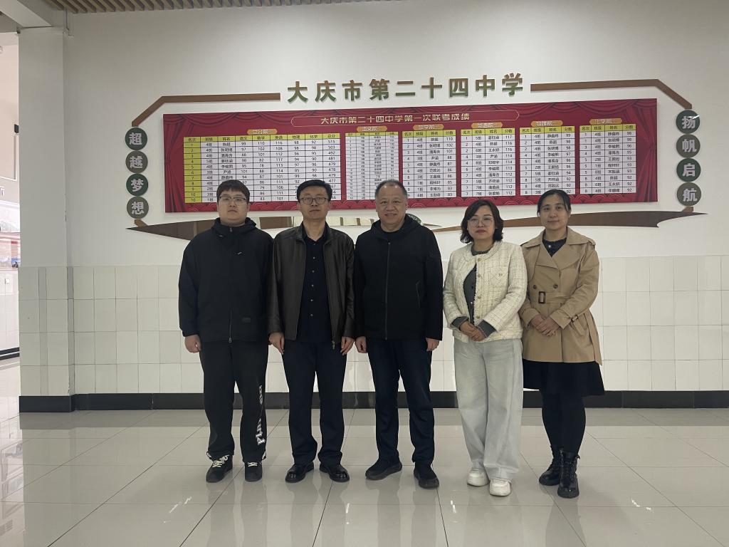 为落实学校4月10日召开的职业技能训练方案汇报会会议精神,进一步做好数学科学学院数学师范生教师职业技能训练实施方案设计和实施工作,数学科学学院院长高扬、副院长沙元霞、教学秘书牛博一行三人赴大庆市第二十四中学进行交流研讨。大庆市第二十四中学党总支书记成庆、教学副校长侯慧热情接待并全程参与研讨交流。