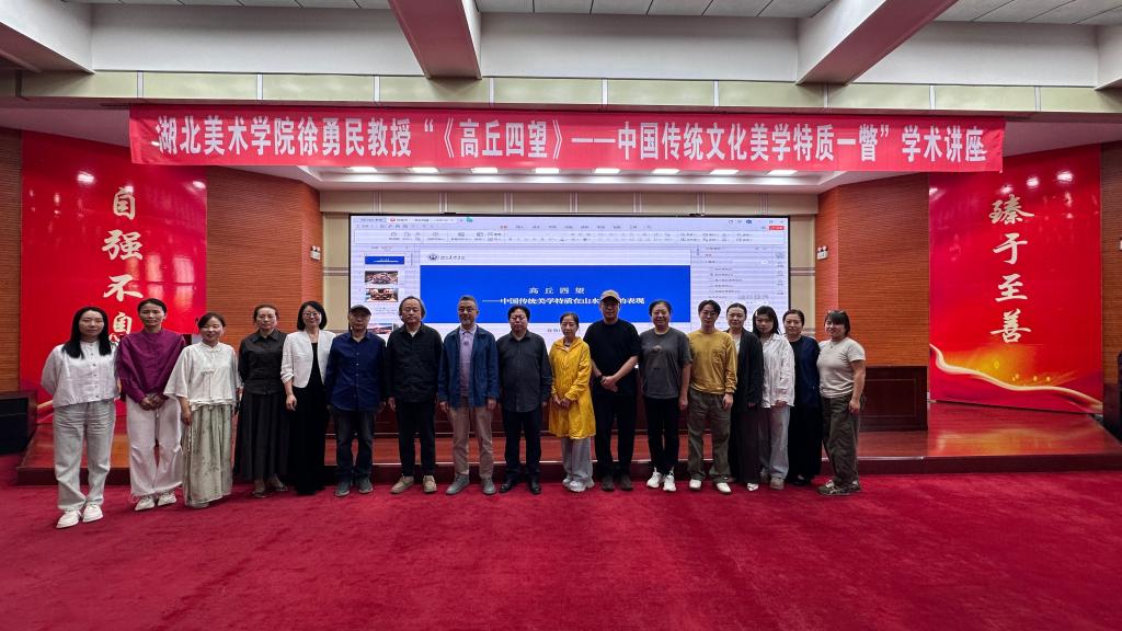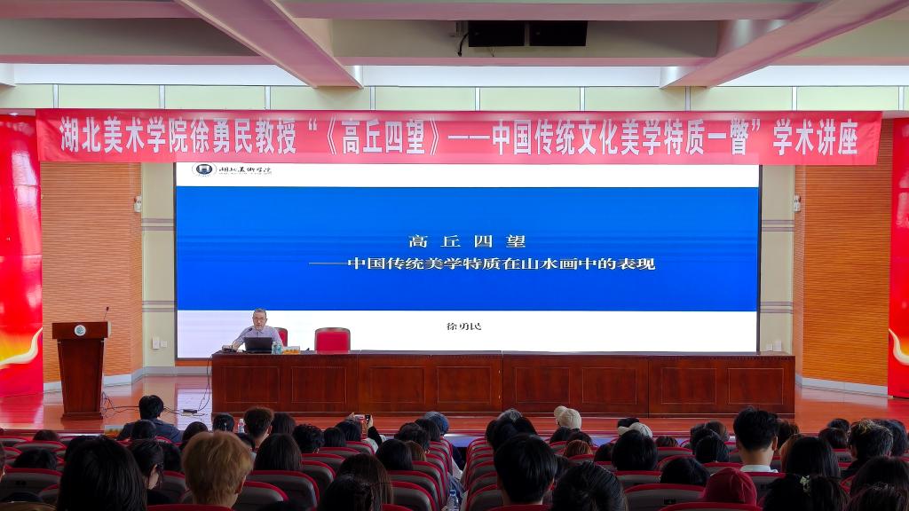 9月9日下午,我校成功邀请到湖北美术学院教授徐勇民,以《高丘四望——中国传统文化美学特质在山水画中的表现》为题,开展了一场兼具深度与广度的学术讲座。美术与设计学院师生参加讲座。讲座由科研处负责人陈立勇教授主持。