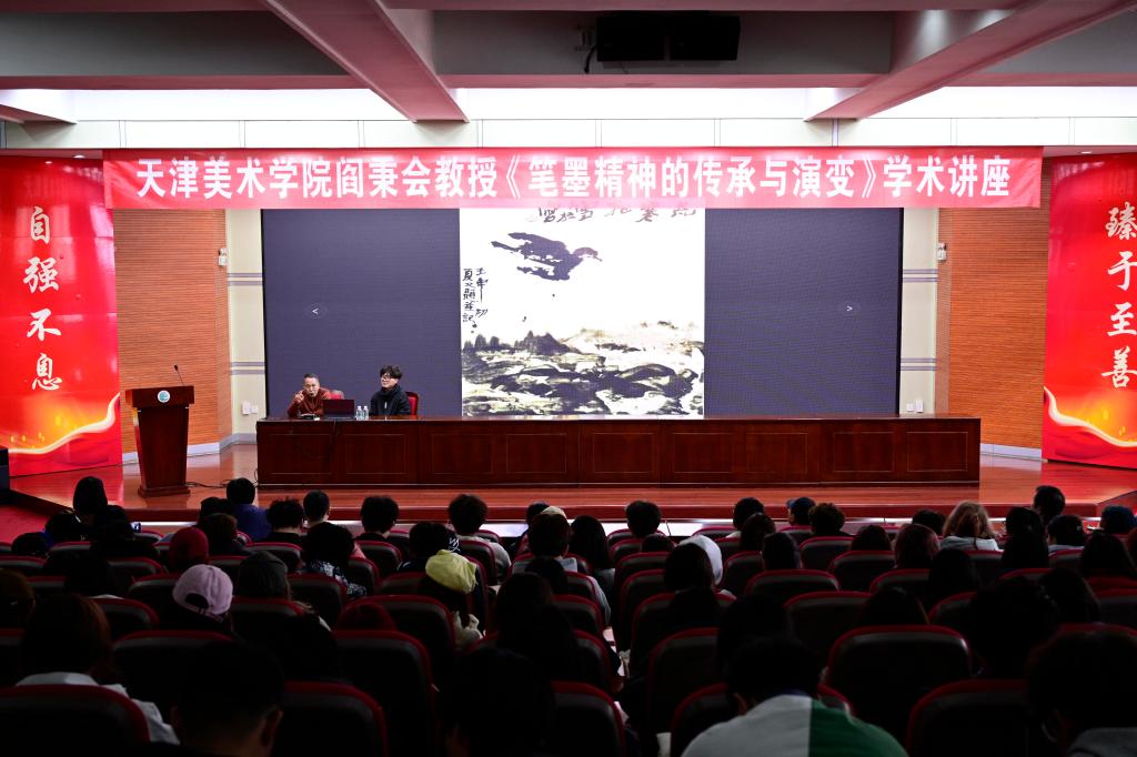 10月15日下午,美术与设计学院在博雅讲堂邀请天津美术学院阎秉会教授做题为《笔墨精神的传承与演变》的学术讲座。本次讲座聚焦中国传统笔墨艺术的核心价值与当代发展,为在场师生带来一场兼具深度与温度的文化盛宴。