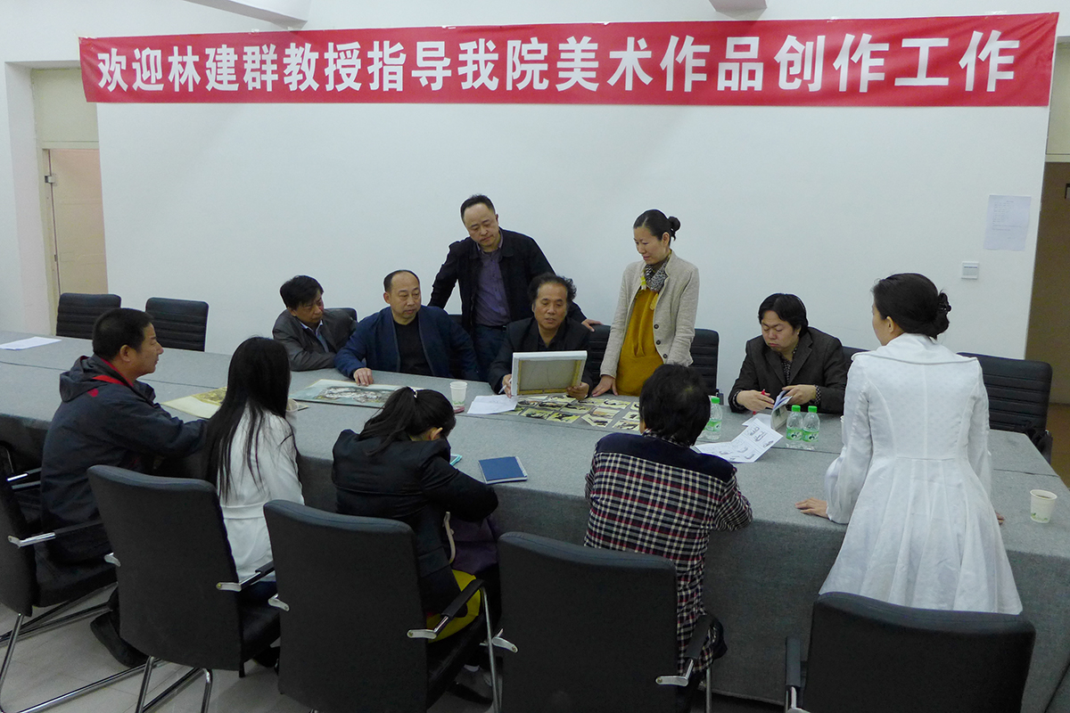 讲学当天上午,林建群教授对学院多名教师的创作作品给与指导,并参观了大庆油陶实验室及陈列室、大庆石油美术研究所和学生创业实训室、美术作品展厅等,对学院教师的创作及教学设计提出多项建议。