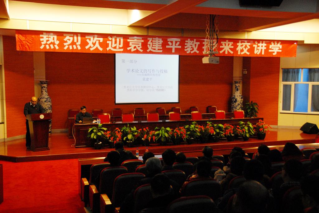为提升我校理工学科教师科研水平及学术论文层次,12月11日,我校科研处邀请《黑龙江大学自然科学学报》主编袁建平教授,在博雅讲堂为学校理工学院教师及研究生作了题为《从编辑的角度谈学术论文的写作与投稿》的学术报告。校长徐克明参加了本次报告会。