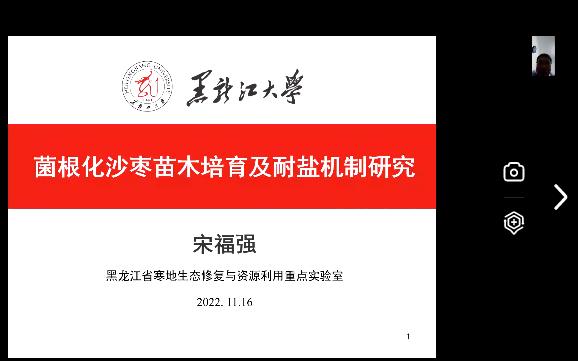 2022年11月16日,应生物工程学院、黑龙江省油田应用化学与技术重点实验室邀请,黑龙江大学二级教授宋福强老师作了题为《菌根化沙枣苗木培育及耐盐机制研究》的线上学术报告,同时结合自身科研经历对国家自然基金的申请流程及注意事项进行了交流和辅导,会议由生物工程学院院长任国领教授主持,学院教师和部分本科生聆听了报告。