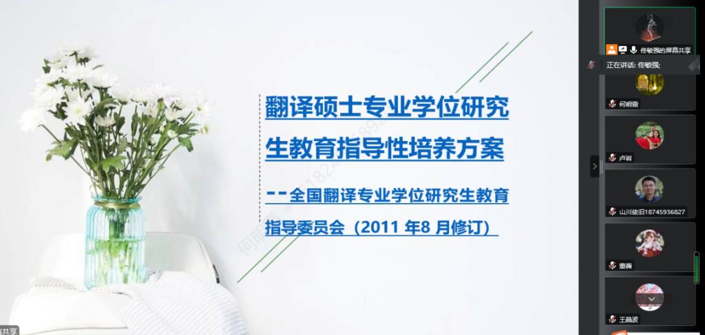 2022年10月12日,外国语学院邀请黑龙江大学应用外语学院院长、黑龙江大学MTI教育中心常务副主任佟敏强教授,以线上讲座的方式,为学院翻译硕士培育点学科教师开展系列讲座之第二讲。本次讲座主题为“MTI人才培养方案简介”。