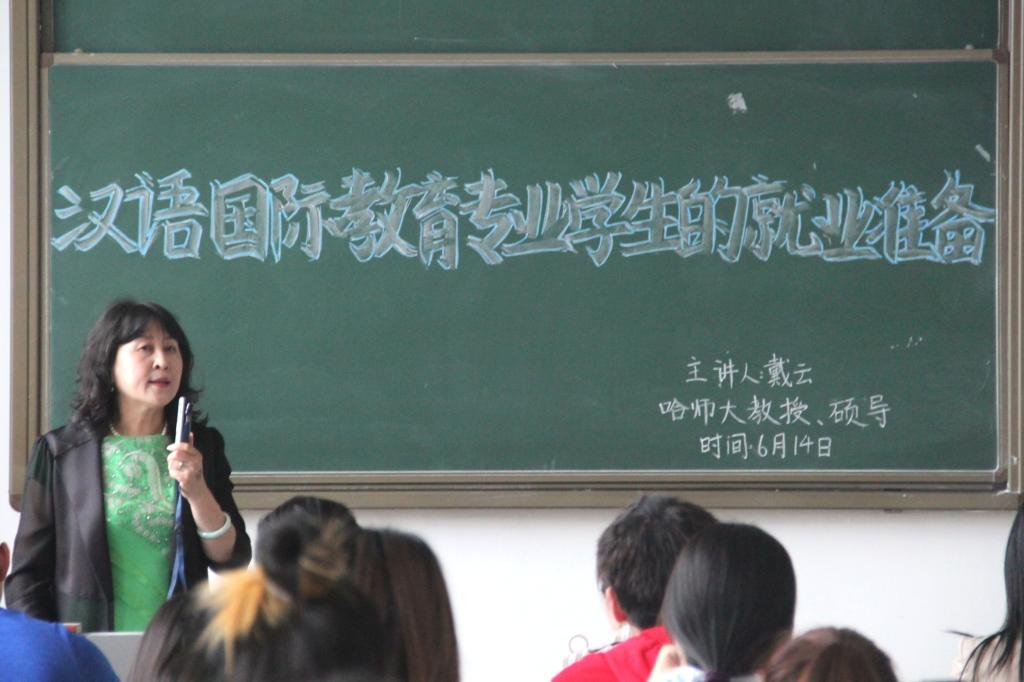 6月14日上午,由学校科研处主办,文学院承办的校级学术讲座举行。本次讲座的专家是哈尔滨师范大学国际教育学院硕士生导师戴云教授,讲座题目为为“汉语国际教育专业学生的就业准备”。讲座由文学院院长赵丽教授主持,院长助理徐晶及2016级、2017级汉语国际教育专业全体学生聆听讲座。