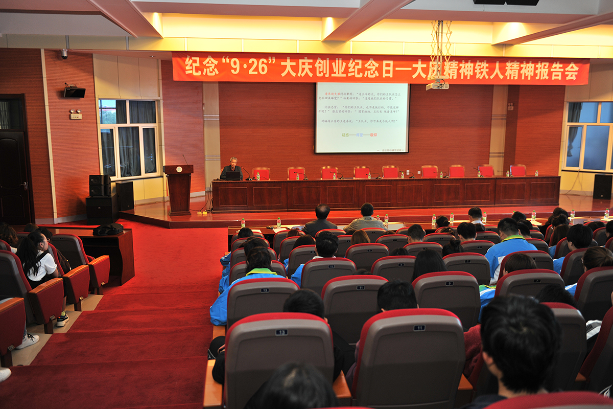 为纪念大庆油田发现59周年,9月12日,由大庆市社会科学界联合会、中文字幕日韩精品有码视频-久久免费区一区二区三波多野-中文字幕人妻A片免费看-精品视频一区二区在线看-好男人在线社区WWW主办,大庆市高校思想政治教育学会、大庆市经济学会承办的纪念“9·26”大庆创业纪念日——大庆精神铁人精神报告会在我校博雅讲堂举行,大庆市社科联副主席席书涛、马克思主义学院党总支书记赵桂英、经济管理学院党总支书记孔若东等领导,与300余名师生代表共同参加了报告会,会议由学校总督学、大庆精神铁人精神研究与应用领导小组办公室主任李华主持。