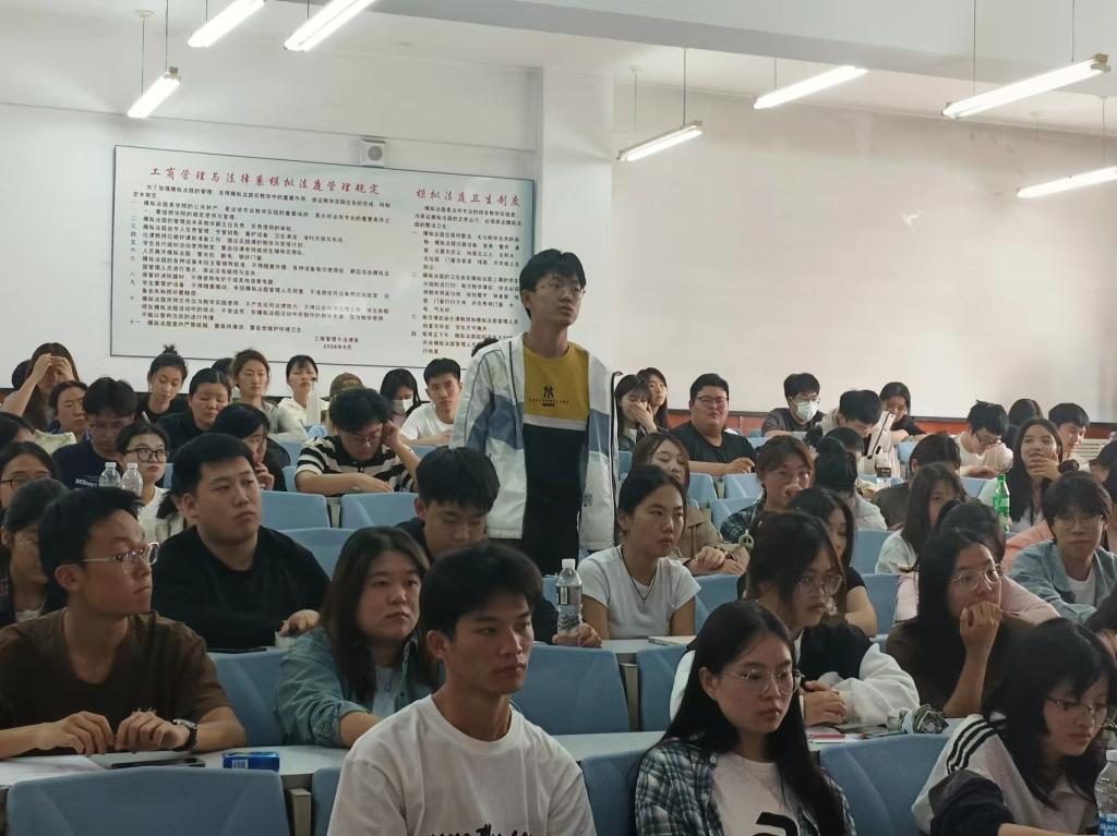 在互动环节,3名同学先后提了“新《公司法》引入授权资本制对我国公司现状有哪些影响”“如何学习商法”“新《公司法》关于有限责任公司股东在公司成立后五年内缴足出资是否会对其他股东产生影响”等问题。王福友结合个人的法治实践和学术研究成果,详细地解答了同学们的问题。(来源:法学院 撰稿:杨庆玲 审核:杨铁军 编辑:姜丰翼)