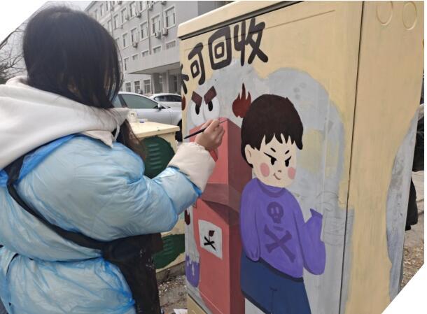 记者看到,箱体四周已经画上了彩色的图画,学生们正在认真涂色,仔细研究图画的细节之处,不管从哪个角度看,都是一幅完整的画作。