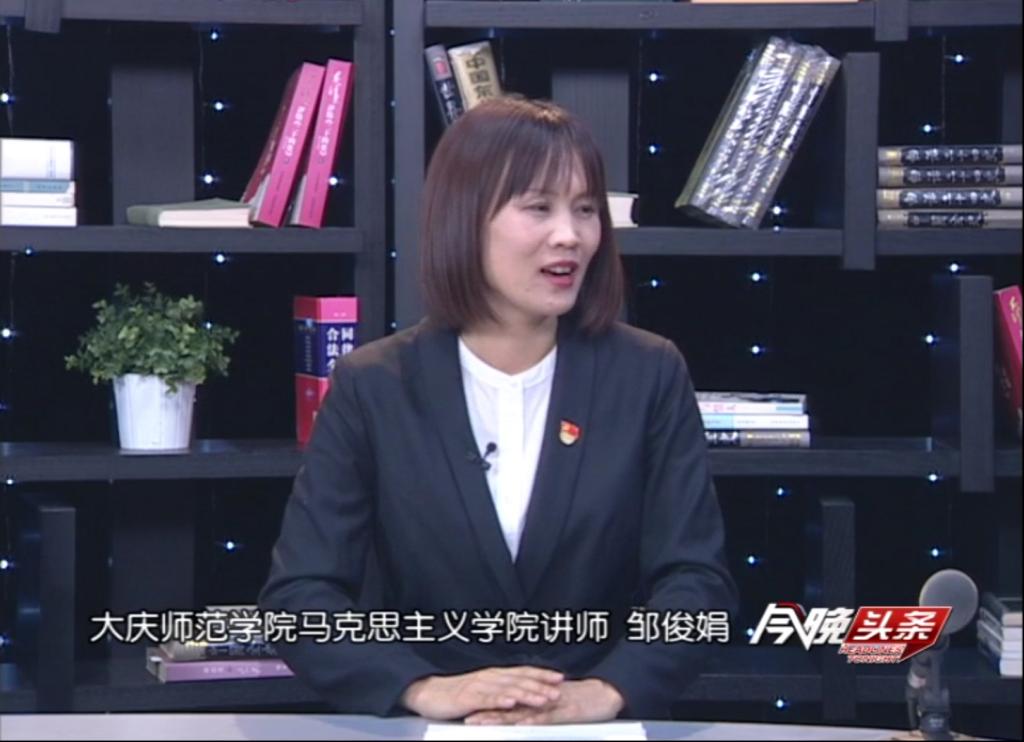 在邹俊娟博士备战受教育部邀请、赴同济大学为教育部和全国专家展示“龙江筑梦70年”思政情景金课之时,11月21日作为我校基层党支部书记、思政课教师、主题教育党课宣讲员,受大庆广播电视台“今晚头条”栏目的邀请,和其党员联系点我校计算机学院培养的优秀毕业生、创业城第8社区党支部书记崔秀楠同志一起畅聊了“不忘初心、牢记使命”宣讲的一些故事。