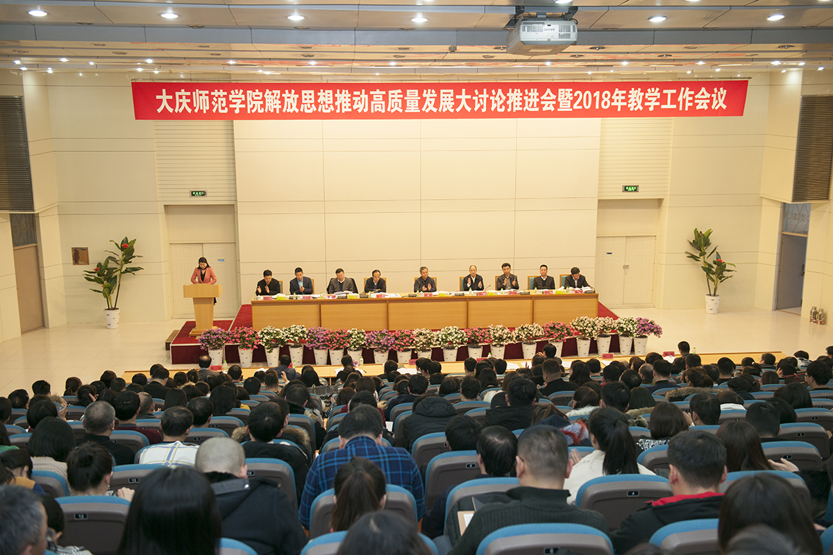 12月19日下午,我校在百湖大讲堂召开解放思想推动高质量发展大讨论推进会暨2018年教学工作会议。学校全体教师,总督学以上领导,教务处、高教研究与教学质量评估中心、人事处、学生工作部(处)全体人员,其他机关教辅单位副科级以上领导共600余人参加了会议。