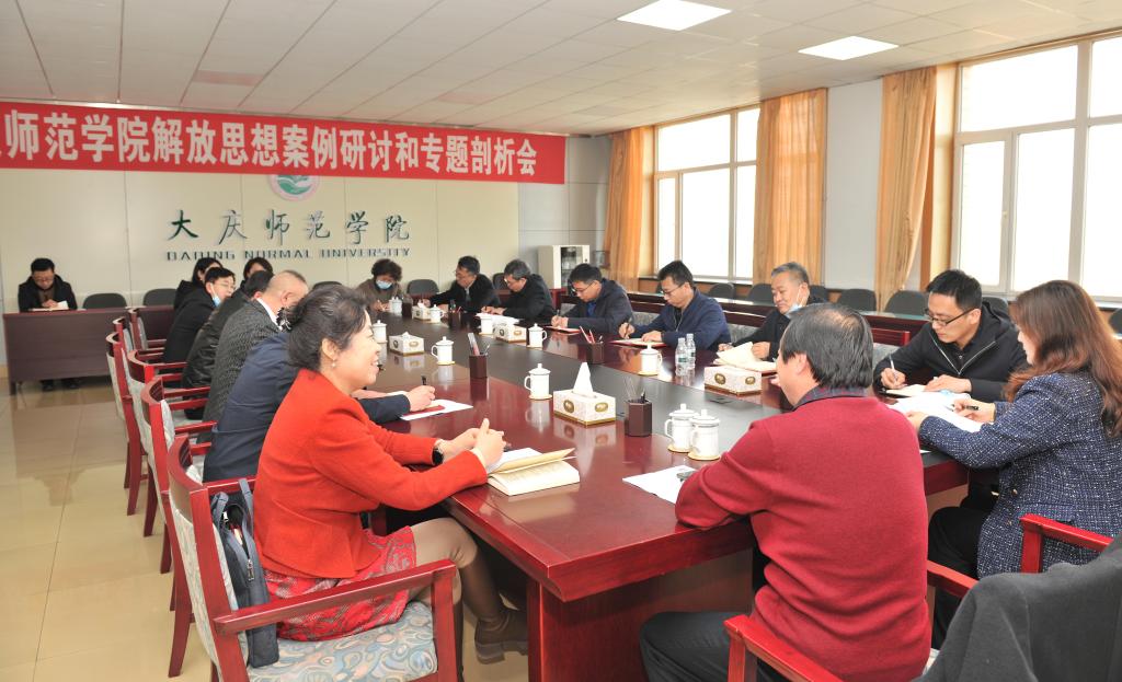 解放思想案例研讨和专题剖析会议分三组召开,即学校党委理论学习中心组成员,机关副处级以上干部,二级学院副处级以上干部。(宣传统战部供稿)