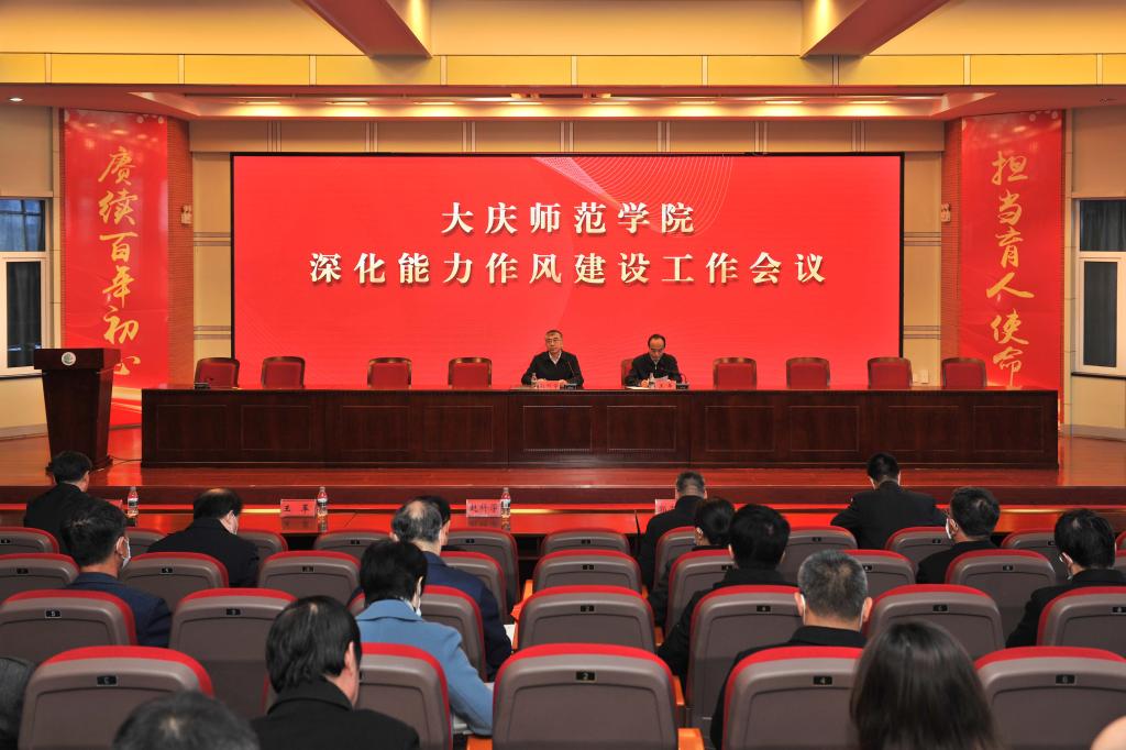 4月19日上午,我校在图书馆博雅讲堂召开深化能力作风建设工作会议,传达全省及全省教育系统深化能力作风建设工作会议精神,聚焦“提能力、转作风、抓落实”主题,对学校深化能力作风建设“工作落实年”活动进行动员部署。会议由学校党委副书记王革同志主持,党委书记赵科学同志出席会议并作讲话。学校领导班子成员,副处级以上干部参加会议。