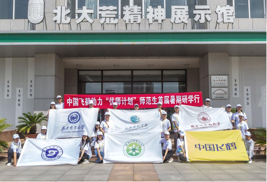 7月17日,中国飞鹤集团助力“优师计划”师范生首届暑期研学行在北京启动。该活动由教育部教师工作司指导开展,北京师范大学、黑龙江省教育厅主办,中国飞鹤集团等单位支持,来自北京师范大学、华东师范大学、华中师范大学、东北师范大学、陕西师范大学、西南大学、哈尔滨师范大学、齐齐哈尔大学、牡丹江师范学院和我校的62名师范生参加了此次活动。六所部属师范大学7月17日、18日两天在北京进行参观学习,四所省属师范大学7月18日在大庆开启红色教育。19日早,十所高校齐聚齐齐哈尔开始共同研学交流活动。