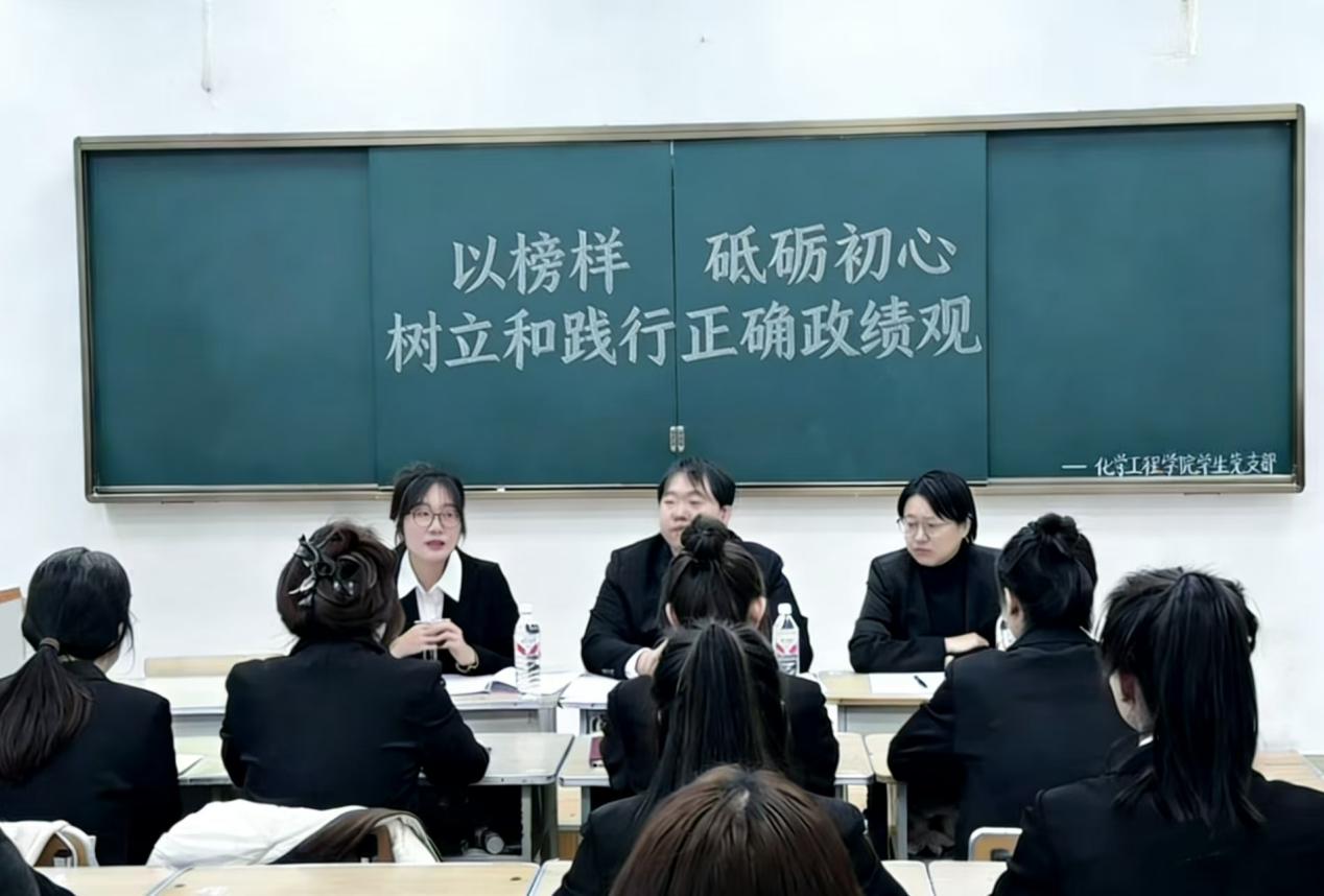 为深入学习贯彻党的二十届四中全会精神,为实现“十五五”良好开局打牢思想基础,扎实推进作风建设,引导学生党员树立和践行正确政绩观,3月18日中午12:30,化学工程学院学生党支部开展“以榜样砥砺初心—树立和践行正确政绩观”主题党日活动,以榜样引领强信念,以思想淬炼固根基,以作风建设促担当。