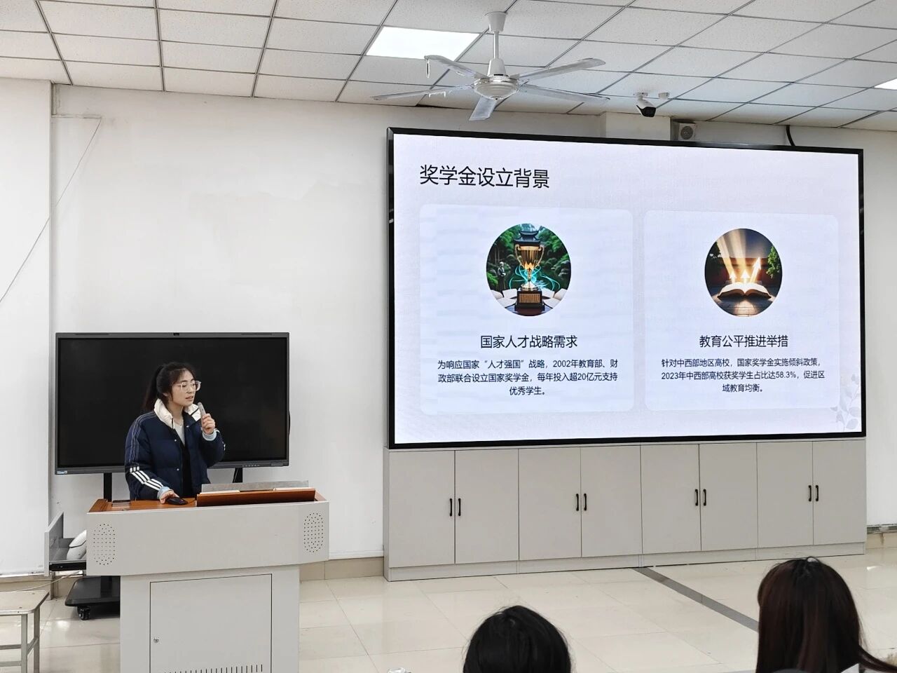 王莹围绕国家奖学金申请流程与经验建议展开分享,她结合自身经历谈到,国家奖学金不仅是对大学期间综合能力的肯定,更在学习动力、个人成长、未来升学与就业等方面带来了积极深远的影响,让自己更加明确目标、坚定方向。她建议同学们尽早通过大学英语四六级考试,扎实学好专业知识,掌握高效学习方法,合理规划时间,同时积极参与本专业相关的学科竞赛与实践活动,不断提升综合素养,为申请国家奖学金打下坚实基础。