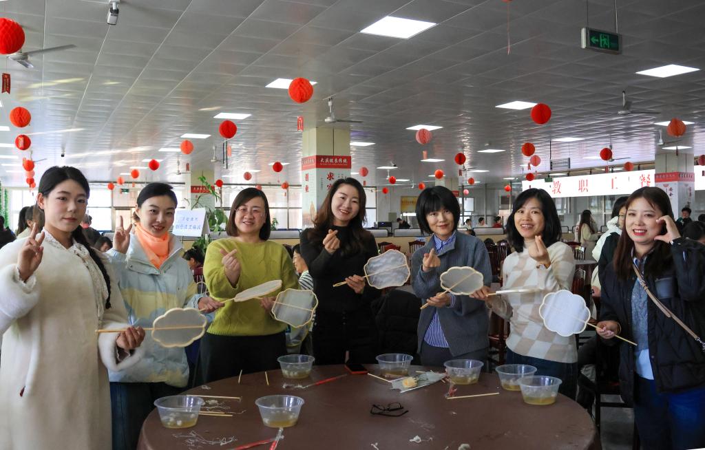 本次庆祝活动突破了传统的联欢形式,创新性地设置了五个集传统技艺与现代美学于一体的创意手作体验区。在“指尖生花”创意插花区,女教职工们巧手搭配,创作出寓意美好的插花作品;在“指间流光”手工银饰制作区,大家精心打磨,制作出独一无二的银饰戒指;在“豆趣盎然”创意豆豆贴体验区,色彩缤纷的豆豆颗粒在指尖拼贴出趣味图案;在“陶韵匠心”油陶制作区,让参与者亲身感受大庆特色文化遗产“油陶”的魅力,体验泥土塑形的乐趣;“丝韵清风”古法蚕丝扇制作区,则通过传统缫丝工艺,带领大家制作出轻盈雅致的蚕丝团扇。各体验区均配有专业老师或工作人员指导,活动现场气氛热烈,充满了欢声笑语。